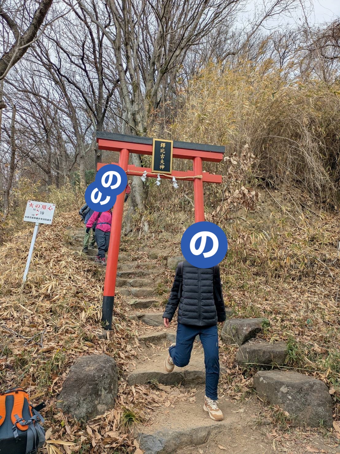 神社を背に、高尾山山頂をめざします。